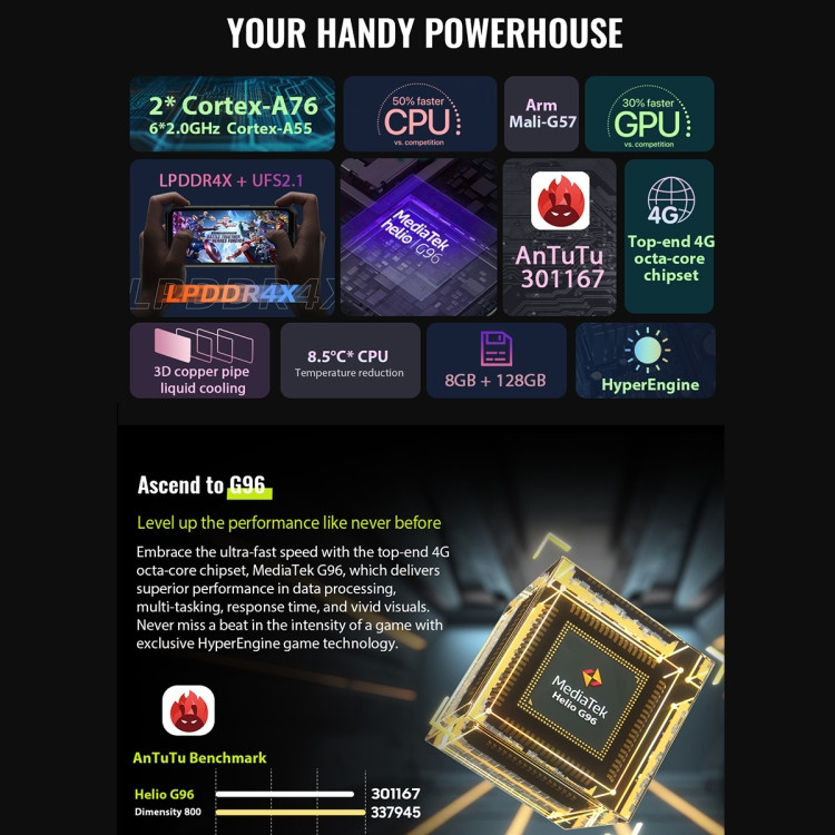 Blackview BV8800 Rugged Phone Dual Sim 128GB Black (8GB RAM)